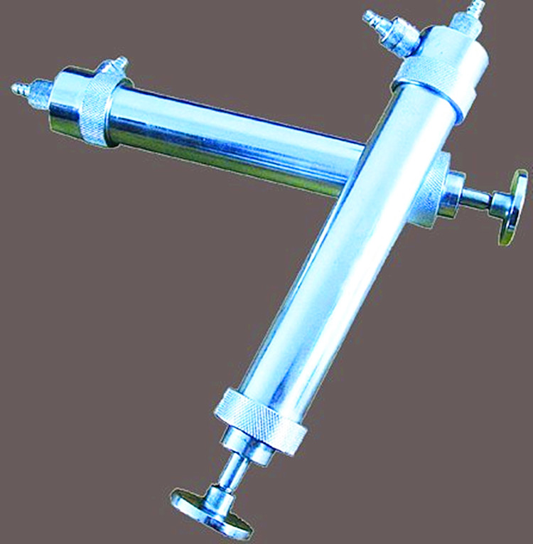 2. 抽氣時(shí),側(cè)面進(jìn)氣接頭內(nèi)的膠塞閥自動(dòng)打開,高負(fù)壓瓦斯流入氣筒內(nèi)。