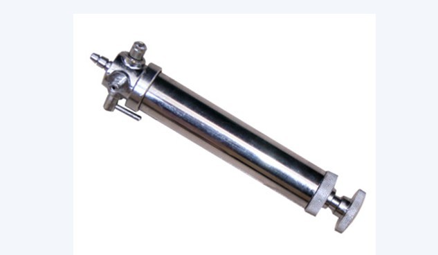 正壓采樣器的型號為CZY50型,主要由三通閥門、進氣口、出氣口、膠塞閥、拉桿、